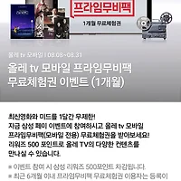 | 삼성페이에서 올레 TV 모바일 프라임 무비팩 무료 체험권 이벤트하네요. (0) | 2017.08.09 |